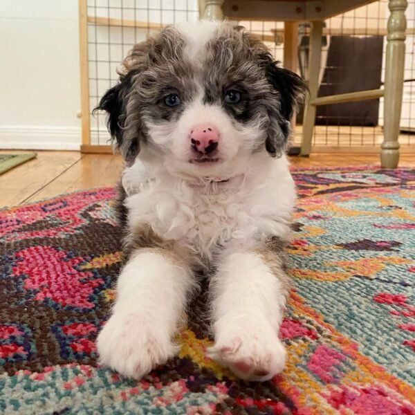 If you’re on the hunt for F1 mini Aussiedoodle puppies for sale, you’ve come to the right place! These charming little dogs are a delightful cross between Miniature Poodles and Mini Australian Shepherds, known for their intelligence, playful spirit, and affectionate nature. F1 mini Aussiedoodles typically weigh between 15 to 35 pounds and stand about 12 to 18 inches tall, making them the perfect size for families and individuals alike. Their hypoallergenic coats are soft and low-shedding, making them an excellent choice for those with allergies. With their friendly demeanor and eagerness to please, these puppies are not only great companions but also highly trainable, excelling in various activities and obedience training.When considering an F1 mini Aussiedoodle, it’s essential to understand their needs. These puppies thrive on social interaction and require regular exercise to keep them happy and healthy. Their energetic nature makes them ideal for active families who enjoy outdoor activities like hiking or playing fetch. With proper training and socialization from a young age, F1 mini Aussiedoodles can become well-adjusted family members that bring joy and companionship to your home. Explore our selection of F1 mini Aussiedoodle puppies for sale today and find your perfect furry friend!